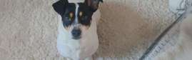 MÖHKÖ, SOTASENVAARA. Mustavalkoinen 7-vuotias karjalankarhukoirauros kateissa.