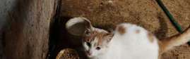 Saarijärvi, Mahlu. Nuori leikattu uroskissa väritykseltään valko-oranssi. Kissa ollut navetta-ulkokissana. Nyt ollut pitempään poissa.