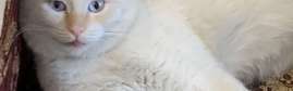 Valkoinen uroskissa, jolla on vaaleanpunaiset kor…