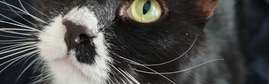 Musta kissa, vatsasta valkoinen. Kasvoissa valkoista, nenän vieressä musta laikku ja valkoiset viikset ja hännänpäässä valkoinen tupsu. Kissa on arka, eikä välttämättä anna ottaa …