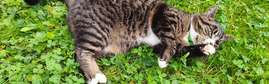 kuitenkaan oma kissa. Kaulassa limenvihreä panta.