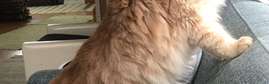 Parkkila. Vaalea punertava, pitkäkarvainen kollikissamme kadonnut. Haapajärven Parkkilassa. Kaulassa punkkipanta.
