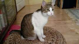 Valkoharmaa 12-vuotias poikakissa lähti tavalliseen tapaan ulos illalla 14.6. ei ole sen jälkeen näkynyt. Musta piste kirsussa, kuonon päässä.