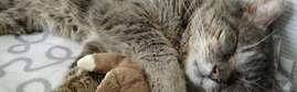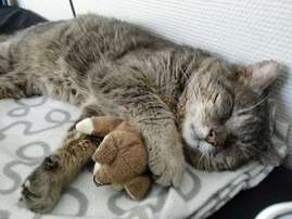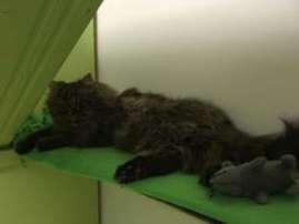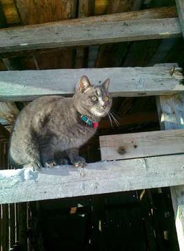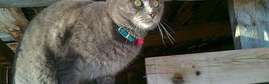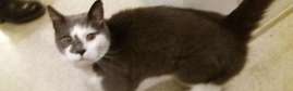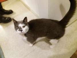 Harmaa, leikattu poikakissa katosi 3.3 pokkeuksellisesti iman pantaa. Ikää 12 v. Nenä ja anturat tumman/viininpun.