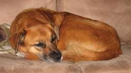 Sekarotuinen keskikokoinen (25 kg) 9-vuotias leikattu narttukoira. Ruskea, kuono jo harmaantunut, rinnassa ja tassuissa valkoista. Lyhytkarvainen, puolipystykorvat.
