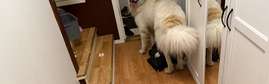 Kaksi isoa valkoista koiraa löytyi pihalta. Nyt sisällä.