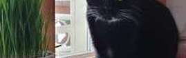 Musta pitkäkarvainen leikattu kolli karannut kotoa. Isokokoinen, vihreät silmät, yleensä arka.
