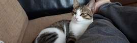 Kuokkalan Ainolanrannassa kadonnut ruskearaitainen, mahan alta ja jaloista valkoinen 6 kk ikäinen poikakissa.