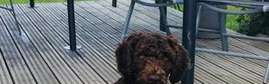 Tumman ruskea espanjanvesikoira karannut Mellunmäessä 16:50. Säikähti ja lähti karkuun. Tyttö jolla portugalinvesikoira etsimässä.