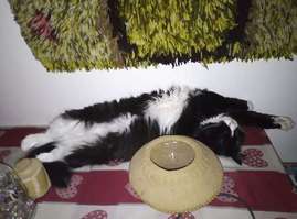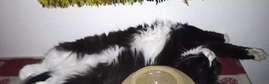 Mustavalkoinen leikattu ja sirutettu 4v kollipoika,puolipitkäkarvainen.
