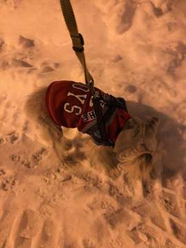 narttu. Häntä puolipitkä, muistuttaa ulkonäöltä vehnäterrieriä hieman.