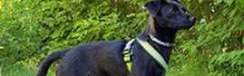 Päällä vihreät heijastinvaljaat ja musta talutusflexi. Ilmoita heti havainnosta