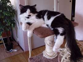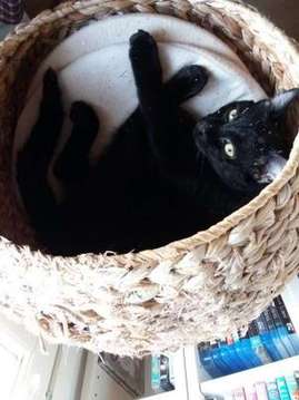 Mustavalkoinen suht. pieni kissa! Kissa on rauhallinen ja ujo, joten saattaa säikkyä.