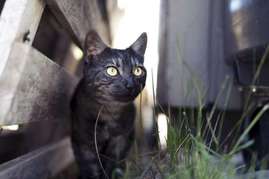 Kadonnut kissa oudossa ympäristössä eilen illalla. Uroskissa, leikattu.