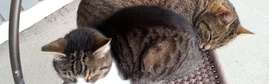 Kissaveljekset livahtivat ikkunasta pihalle hetki sitten. Sisäkissoja, suht arkoja varmaankin ulkosalla...