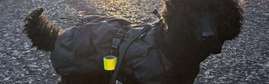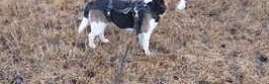 Torppa, Räyrinki. Arka, 2,5-vuotias uros karannut Vetelissä hoitopaikasta. Hihna ja valjaat kiinni, mutta voi rimpuilla valjaista (ei jarrupalaa).