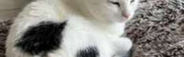 Kadonnut leikattu uroskissa. Valko musta. Korvien takaosassa häivähdys harmaasta.