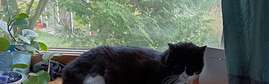 Kymintie, Kumpula, Helsinki. Suurikokoinen mustavalkoinen kissa ilman kaulapantaa.