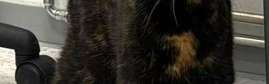 Käpylä, aseman lähellä ruskearaidallinen lyhytkarvainen kissa. Kissa juoksi Panuntien yli Käpylän puoleiseen metsärinteeseen 20.4. klo 18:45.