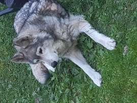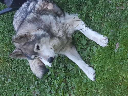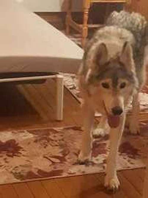 Vanha sekarotuinen husky. Koiralla ikää 17 vuotta ja muisti/kuulo ei enää paras mahdollinen. Koira melko arka ja liikkuu vaivalloisesti...karkasi hihnasta ti-ke välisenä yönä...saattaa pussittaa, mutta ei käy päälle...yleensä häntä koipien välissä.