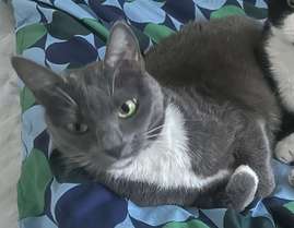Alakylässä Seinäjoella kateissa 21.3. klo 16.30 aikoihin karannut sisäkissa. Kauniin harmaa tyttö valkoisin merkein: kaulalla ’ruokalappu’, leuan kärki myös valkoinen, sekä tassut. Nenän päässä on musta sydän. Selkeän vihreät silmät.