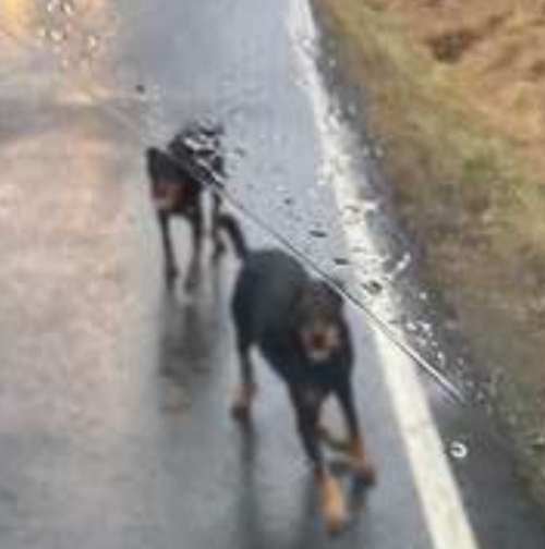 Pilpalassa Kalamajantiellä iltapäivällä nähty kaksi isoa mustaa koiraa.