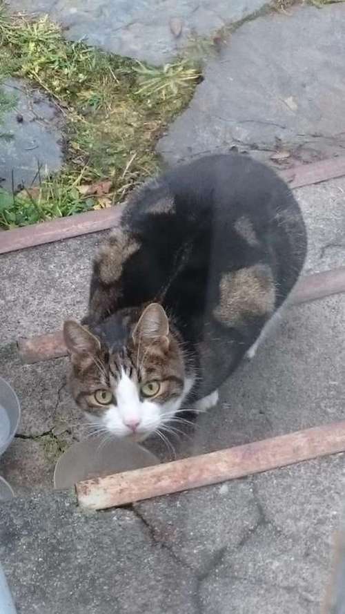 Tämä pieni, erikoisen kauniin turkinkuvioinnin omistava tyttökissa ilmestyi jälleen meidän pihaan ja on tuntunut viihtyvä siellä joka ikinen kesäkuun päivä aamusta iltamyöhään. Ahnaasti syö ruokaa varsinkin aamuisin eli nälkä on kova. Kissa on nuori ja todella ihmisrakas ja "puhelias" tapaus jota saisi rapsutella ja paijata jatkuvasti. Tämä sama kissa ilmestyi meille jo viime vuoden alkutalvesta, mutta lopputalvesta-keväästä hävisi muille maille kunnes nyt taas on saapunut takaisin. Ottamani kuva kissasta on otettu viime vuoden puolella (on siis ennekin ollut jo täällä ilmoitettuna) ja kissa on nykyään hieman laihemmassa kunnossa.