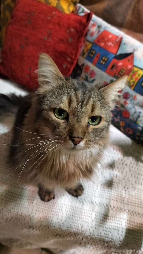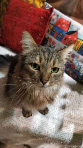 Kouvolan tornionmäki.Puoli pitkäkarvainen harmaan ruskea poika kissa.