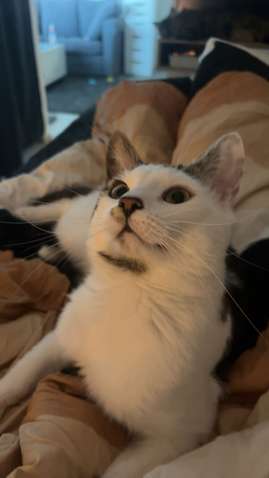 Kadonnut Sirkassa Hillarovan alueella valko/musta/harmaa uroskissa.