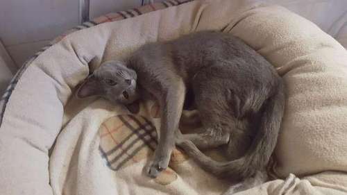 Alkuillasta 19.6. karannut Espoon Nöykkiössä/Eestinlaaksossa pienikokoinen harmaa tyttökissa.