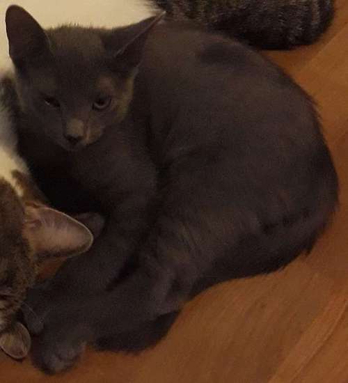 Alle 1-vuotias, kokonaan tummanharmaa väriltään. Yön aikana putosi/hyppäsi ikkunasta ulos. Vieraiden kanssa ollut hyvin sosiaalinen.