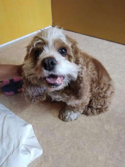 11.6 löytynyt Ahtialantie, Lahti. Vanha narttu. Ruskea(puna)valkoinen cockerspanieli. Koira phesyn löytöeläintalolla, puh. ma-pe klo 13-18, su klo 13-16