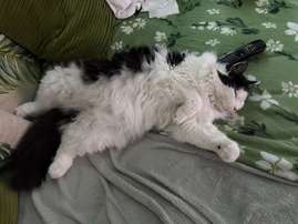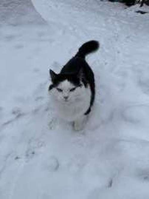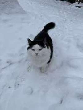 Lahdessa Ali-juhakkalan alueella, iso mustavalkoinen pörröinen kissa.