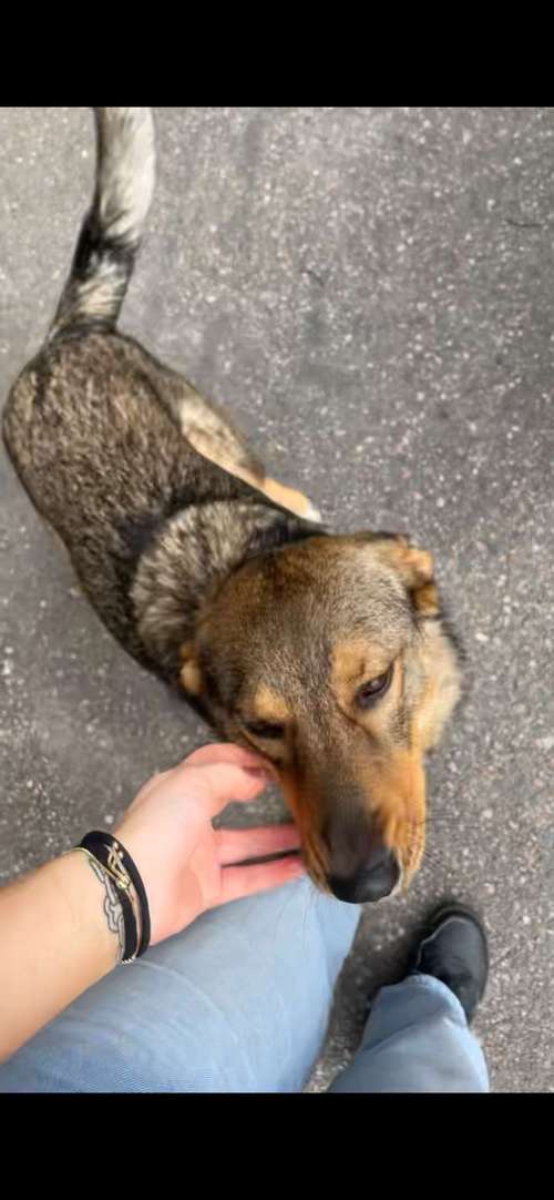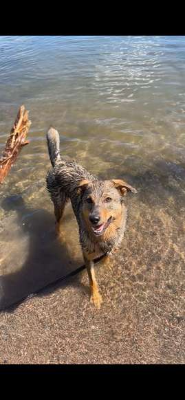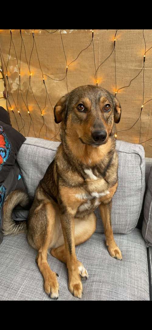 Saksanpaimenkoiran ja labradorinnoutajan mix. Koira on kiltti mutta haukkuu paljon.