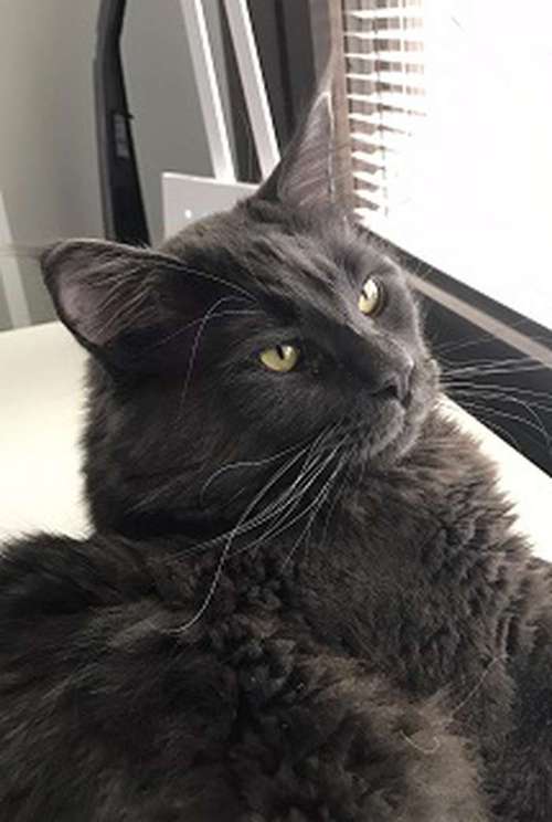 isokokoinen harmaa kissa