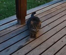 Tampere, Lielahti - Lintulampi: Omakotitalon terassilla kissa jota varmaankin joku kaipailee. Vaikuttaa nuorelta ja hoidetulta sisäkissalta, eikä kauheasti ihmistä aristele. Allergian ja koiran takia ei voida ottaa sisälle talteen.
