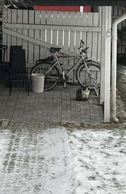 Näköhavainto Kotirannalla Vaasassa mustavalkoinen, pitkäkarvainen kissa