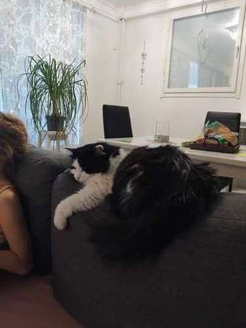 Mustavalkoinen pitkäkarvainen tyttökissa