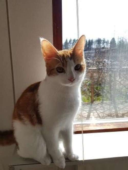 Oranssi-valkoinen leikattu kolli kissa kadonnut Reijolan alueelle
