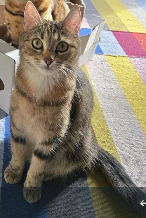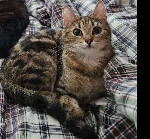 Kadonnut pieni, ruskea ja musta tabby-kuvioinen 3-vuotias naaraskissa Oulussa, Yli-ii, Tannila.