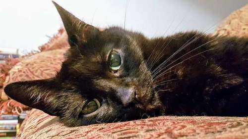 Ensimmäisen kerroksen parvekkeelta hypännyt musta kissa hukkateillä. Aikalailla arka, mutta ihmisrakas kun sille päälle sattuu.