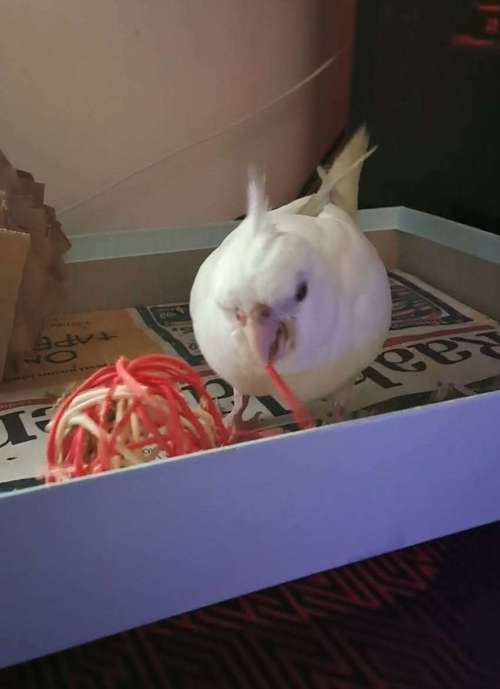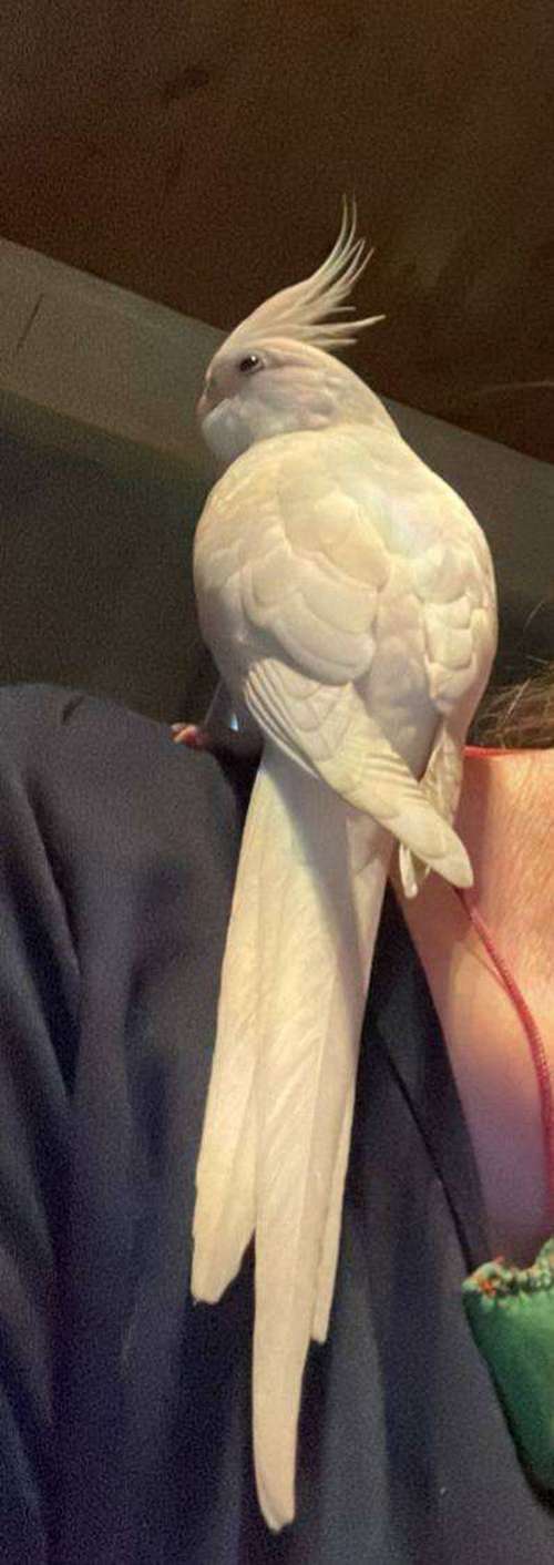 Valkoinen neitokakadu pääsi karkuun pihalle Ruukin seurakuntatalon vierellä klo 14.00 jouluhärdellin aikana ja on nyt kateissa.