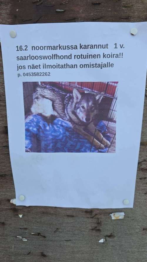 Noormarkussa karannut Kirkkokalliolta saarloos, hihnan pätkä perässä. Kiltti mutta ei anna kiinni!!