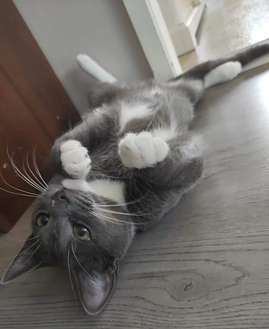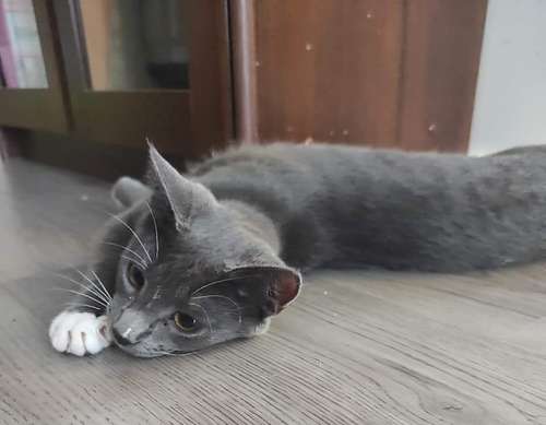 Leikattu nuori harmaa kollikissa kadoksissa neljättä päivää. Ei sirua. Liikkuu alueella Metsämaa/Enäjärvi Meri-Porissa.