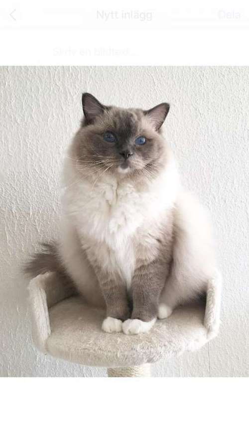 Vaalea pitkäturkkinen. Harmaat kasvot ja häntä. Siniset silmät. Sisäkissa