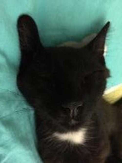 Musta kissa, jolla valkoinen laikku rinnassa