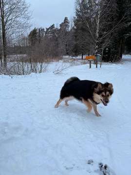 OLARI. Puolarmetsä. "I was walking in the Puolarmetsä area in Olari, Espoo and I found this dog (picture attached). I tried to bring him home, but at the last minute he ran off."