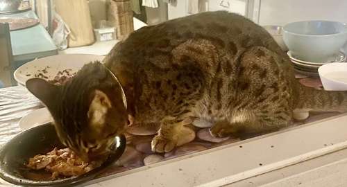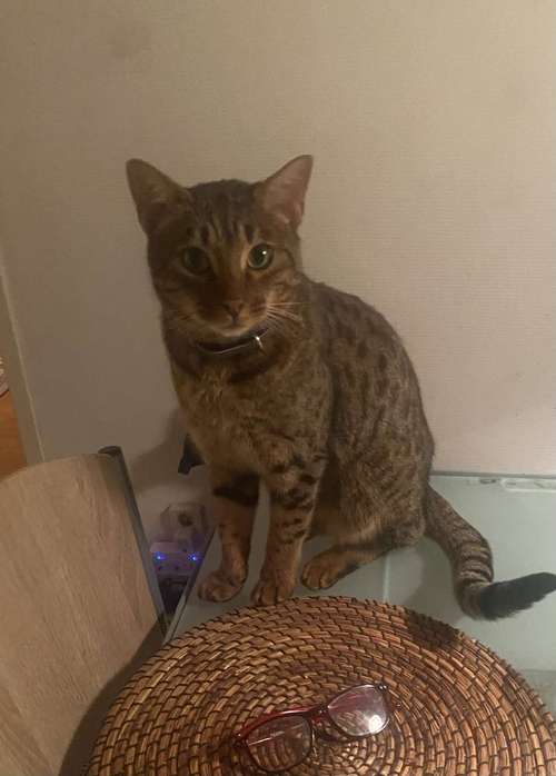 Vaaleanruskea kissa jolla tummia pilkkuja