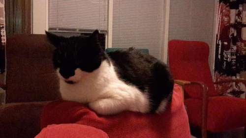 Saatu alas puusta :) Kissa onnellisesti kotonaan. Oli tuo linkissä oleva karkuri. Marssi suoraan ruokakupille häntä kattoa kohti. Omistaja käyttää lääkärissä jos aamulla näyttää siltä, mutta en usko että on tarpeen. Kotonaan oli reipas.