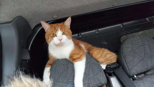 Oranssi-valkoinen noin vuoden vanha uroskissa.